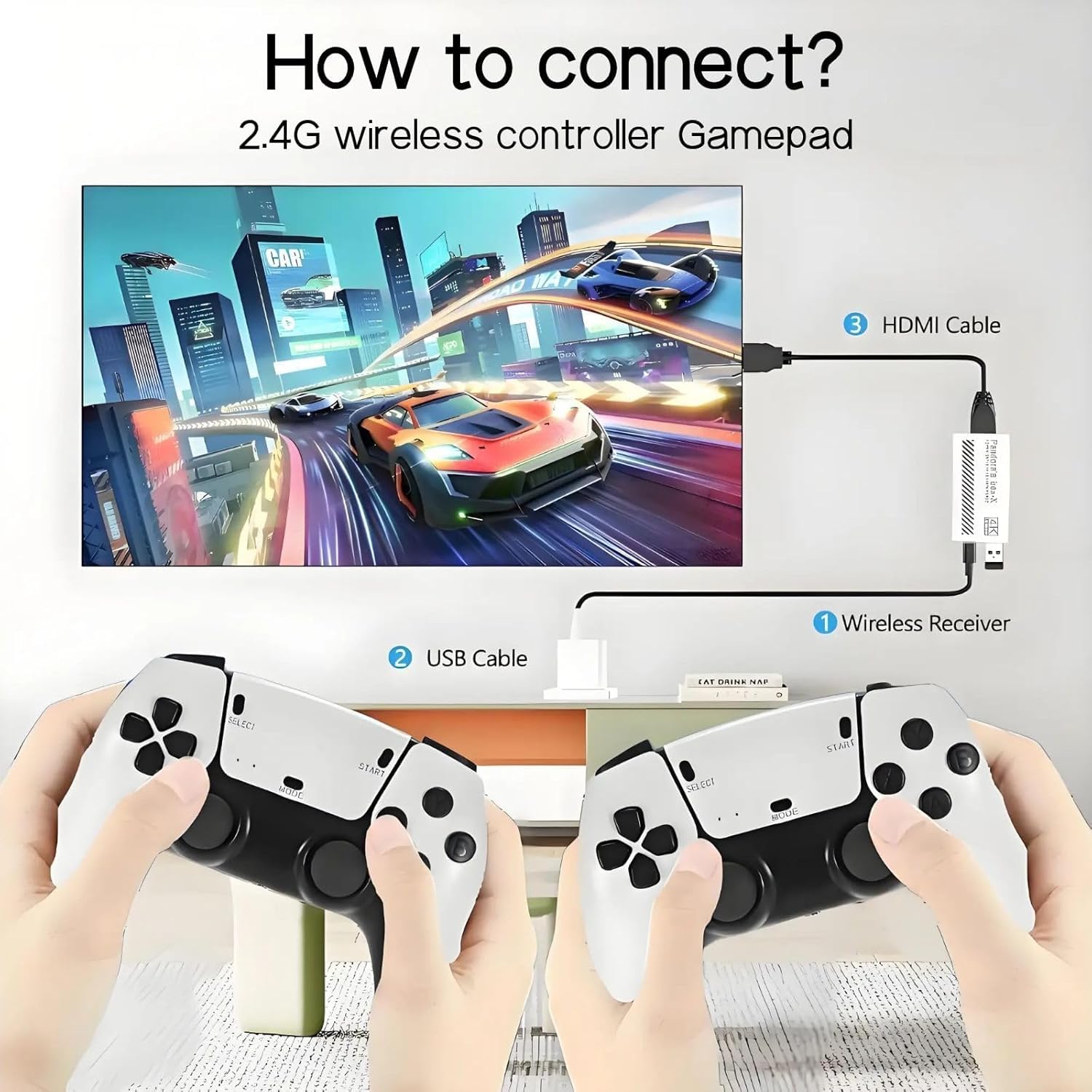 - Two 2.4G wireless controllers-Pre included in the box, supports 2 players playing simultaneously.
