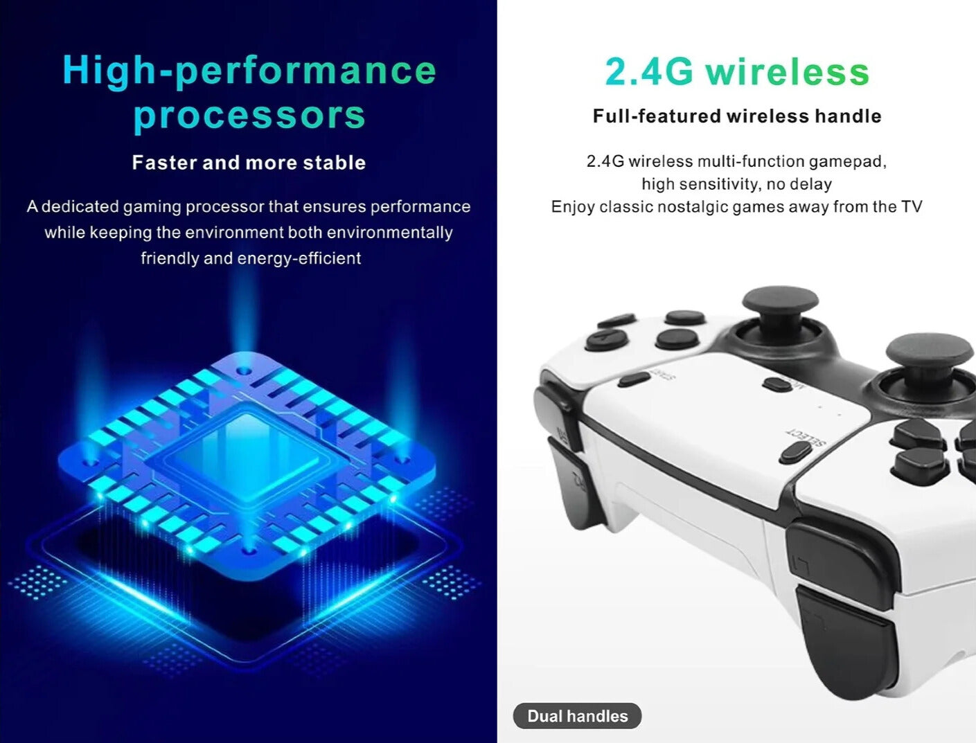 Supporting over 15,000 nostalgic titles, a sleek and portable MINI PS5 type design, and cutting-edge technology, it’s perfect for reliving the classics or sharing the joy of gaming with a new generation.